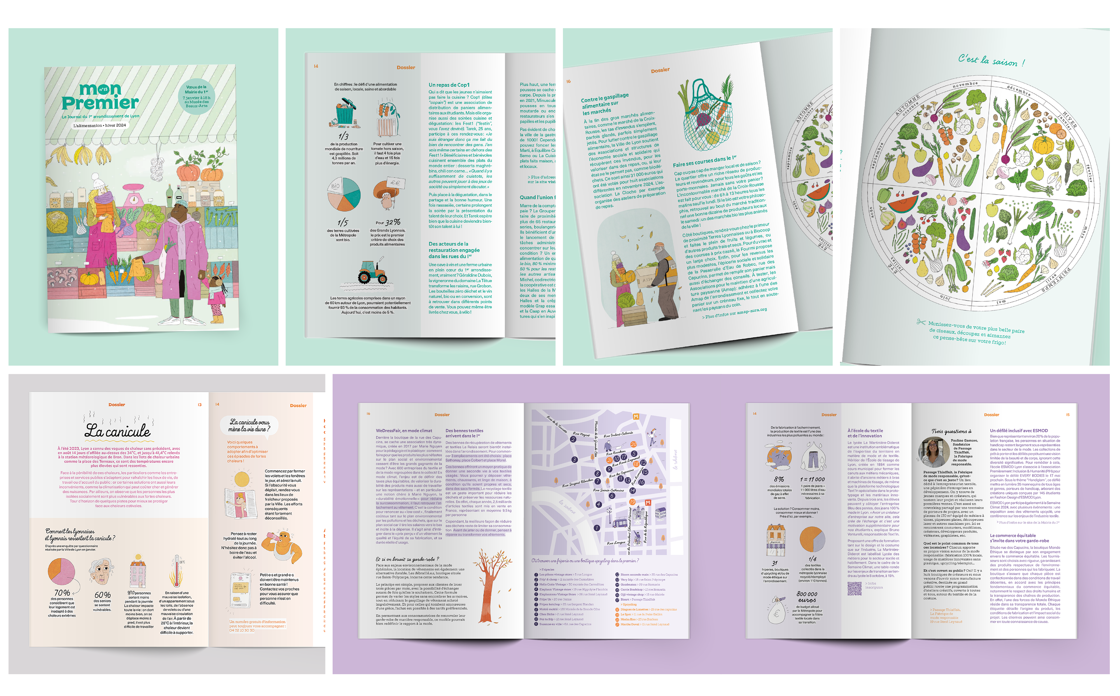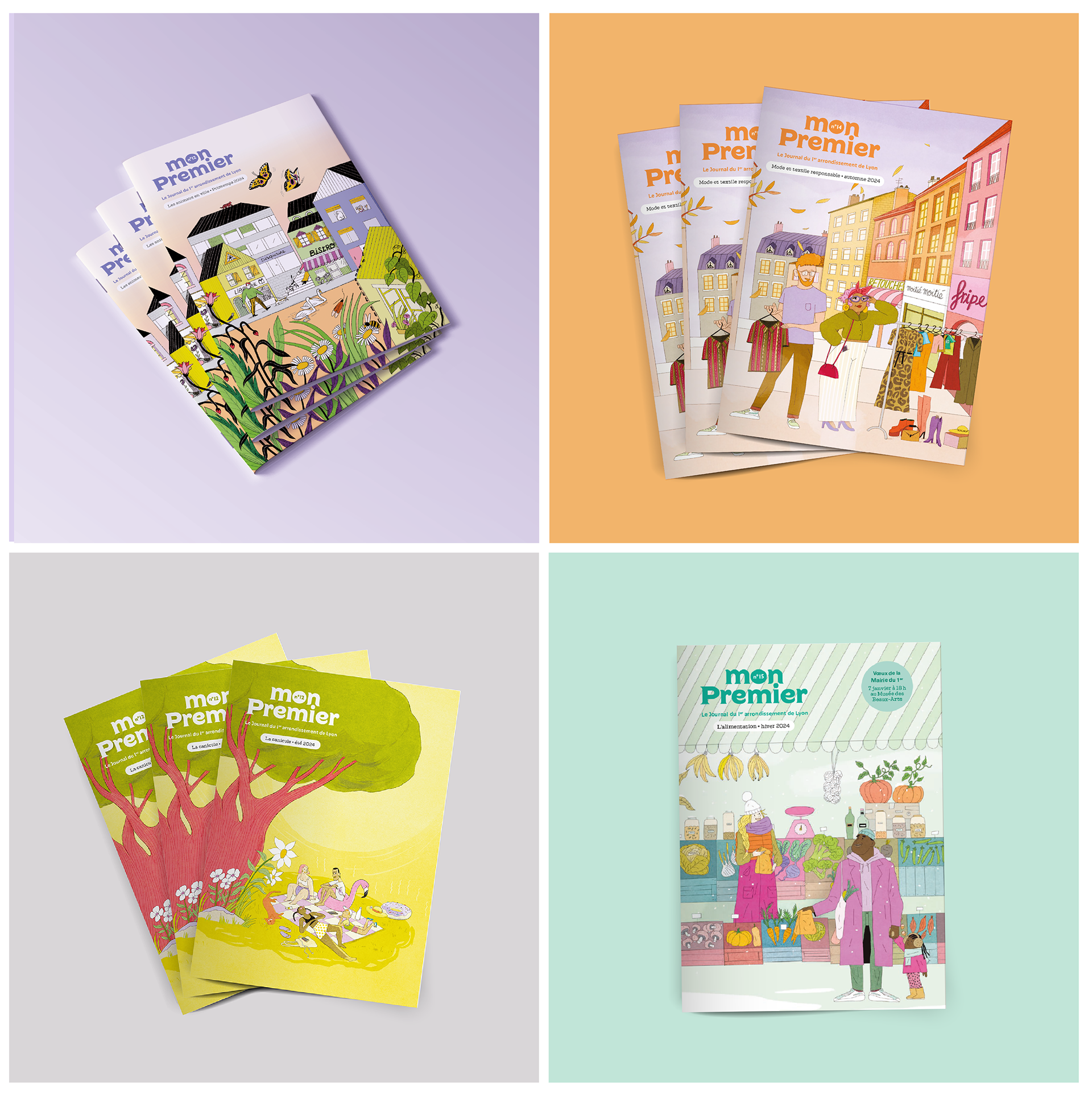 Création des illustrations et mise en page du journal municipal Mon Premier (édité par la Mairie du 1er arrondissement de Lyon).